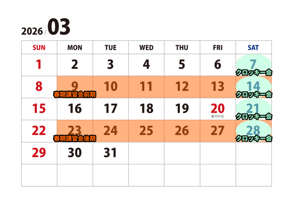 3月の春期講習会及びクロッキー会のお知らせ